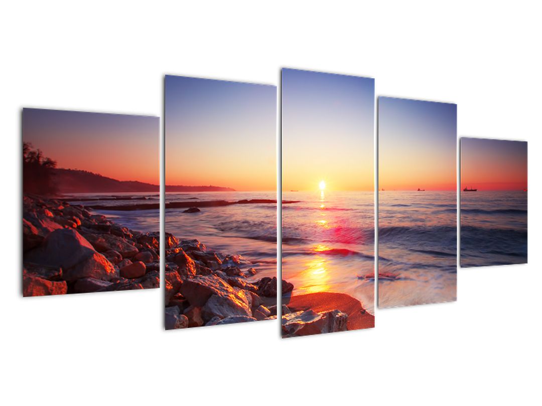Kezdőlap »Öt részből álló kép 150x70cm»Vidékek » Modern kép - naplemente a tenger felett